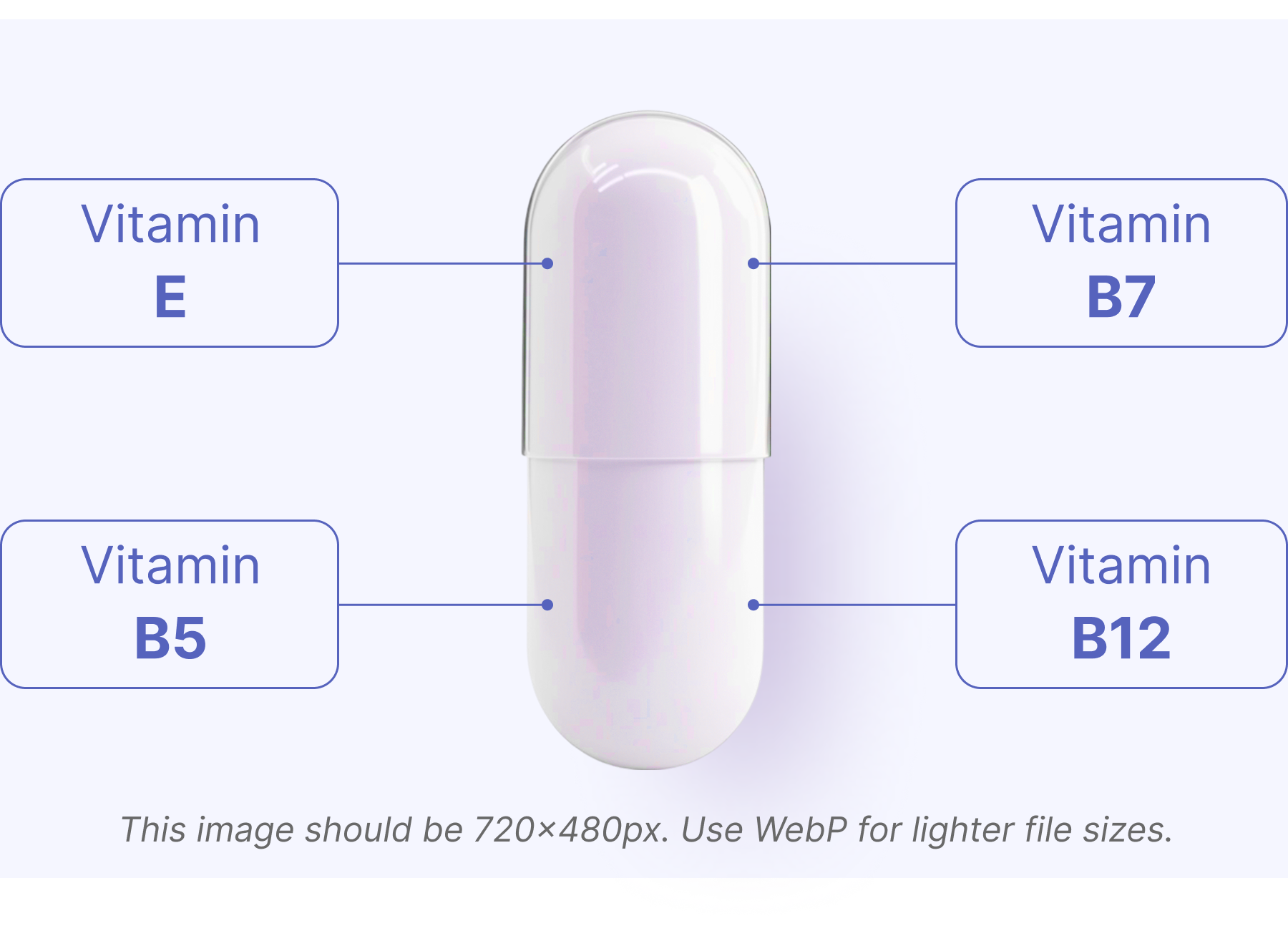 Powered by Biotin, Vitamin B5, E & B12 — working together to nourish hair from within,